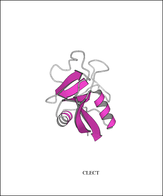 - C-type lectin [CTL] (CLECT,CL) ---> 2MSB: rat mannose binding protein A